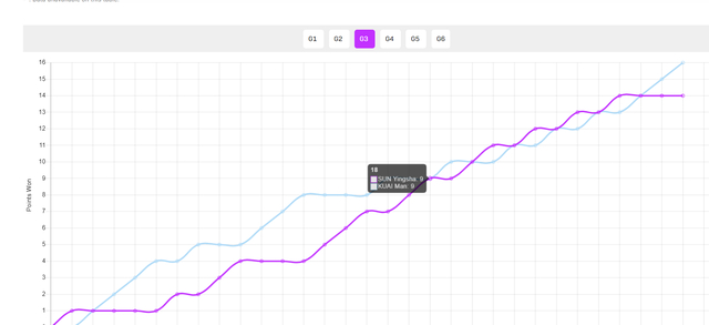 第三局开场蒯曼4-1领先,随后孙颖莎开始疯狂追分,两人打到9-9、10-10、11-11、12-12、13-13、14-14,期间孙颖莎曾4次拿到局点都被蒯曼挽救,最终孙颖莎率先破功,这一局对孙颖莎心理的打击太大。这才导致第六局孙颖莎开场1-10崩盘。